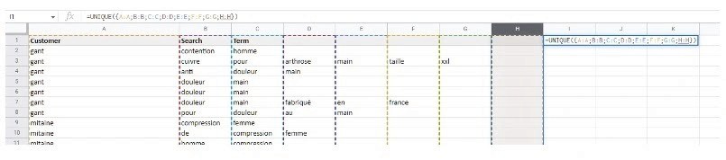 Extract unique keywords using =UNIQUE() formula