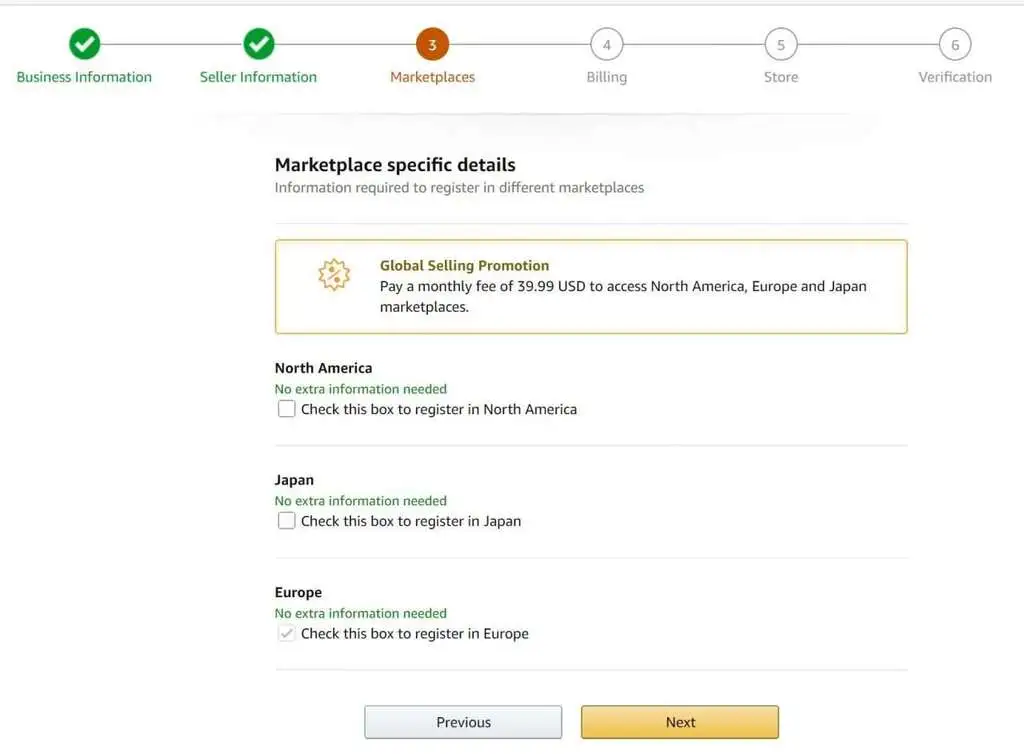 Amazon Global Selling allows sellers to sell on the following marketplaces: